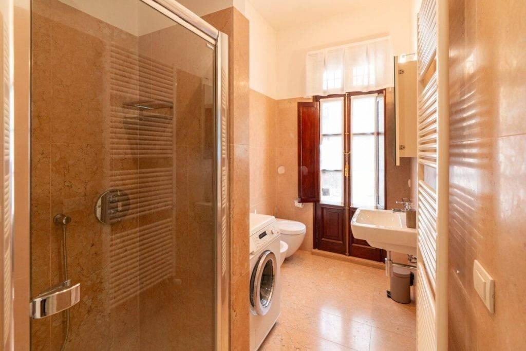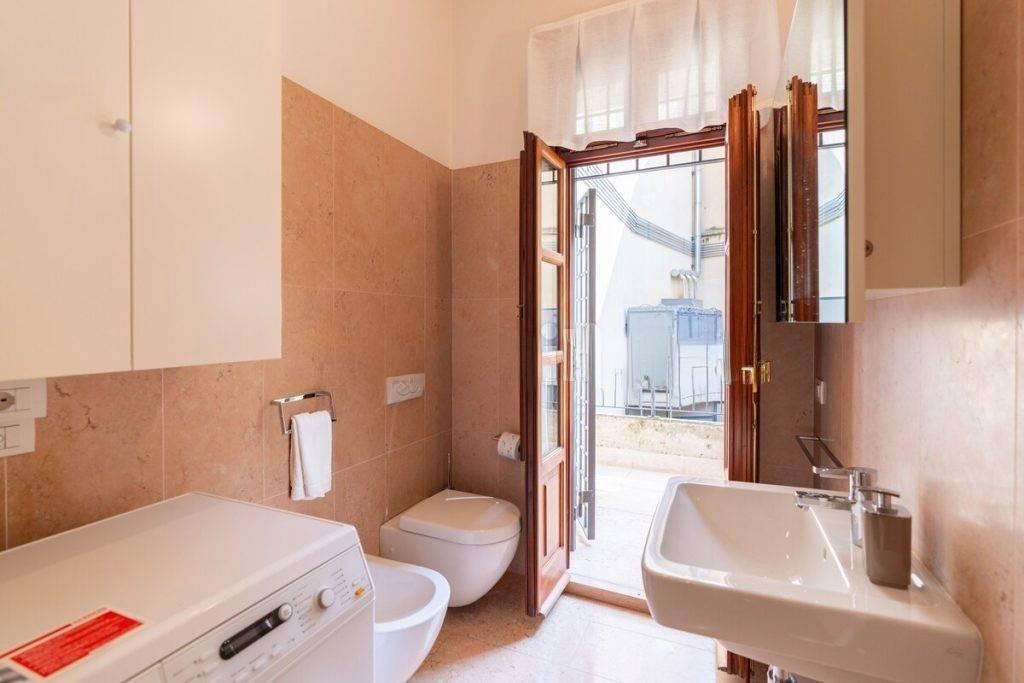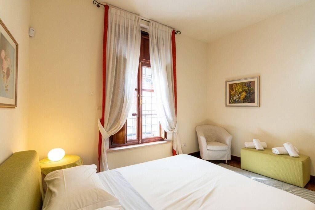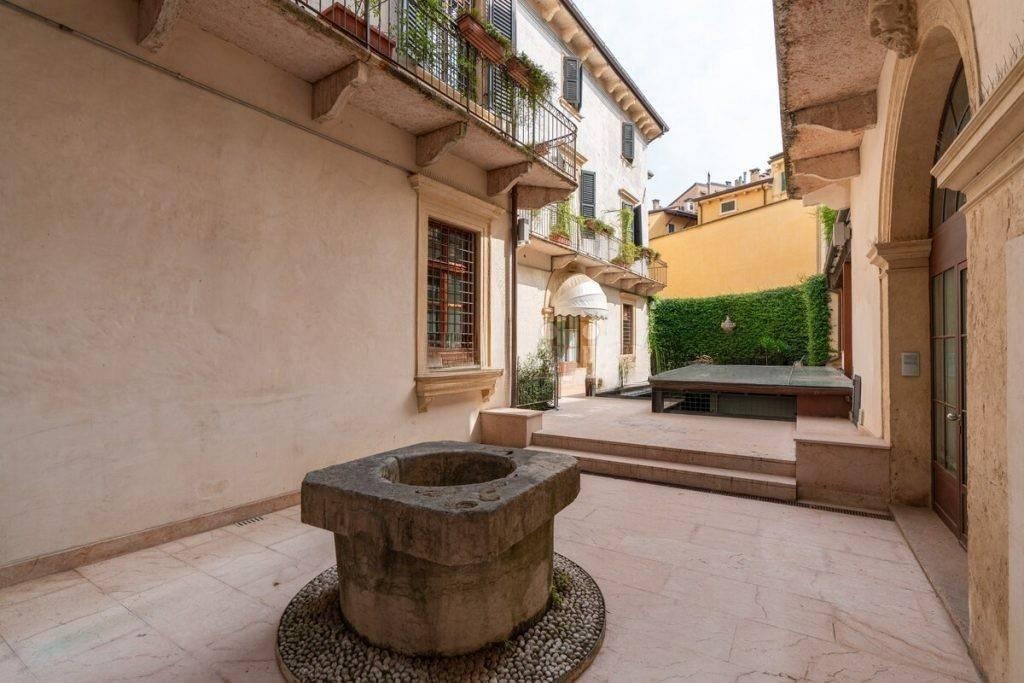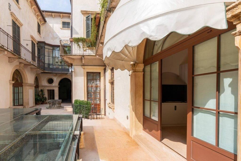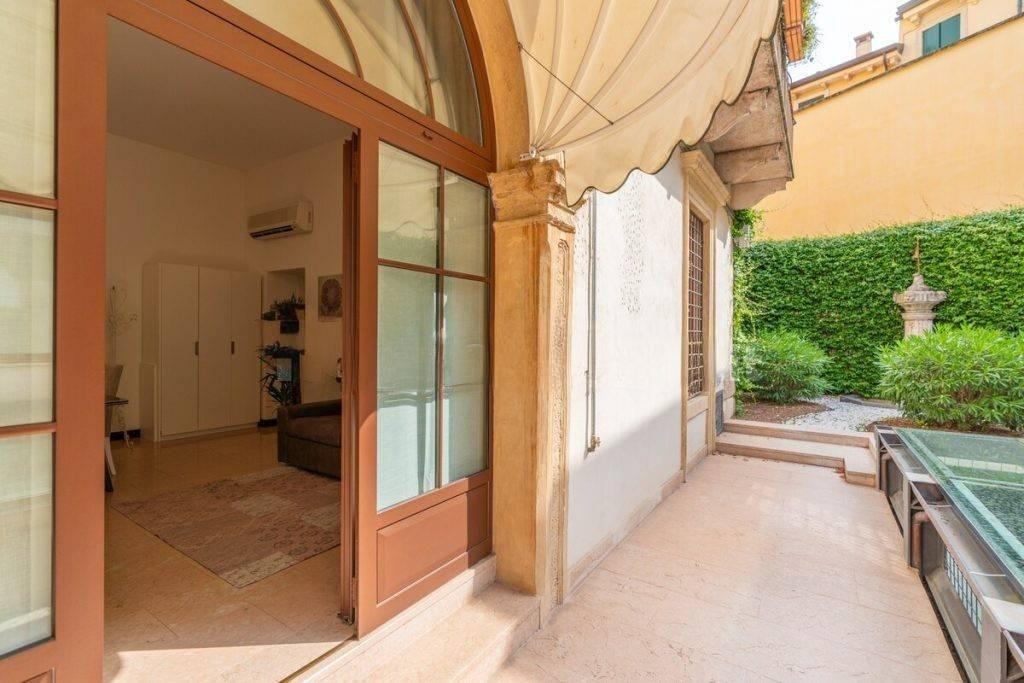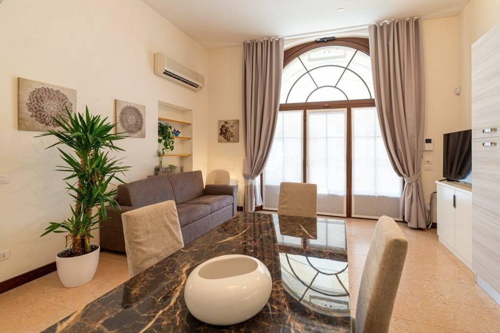 Apartamento elegante de dois cômodos em edifício histórico próximo à Praça Santa Anastasia, com varanda e garagem individual disponível.