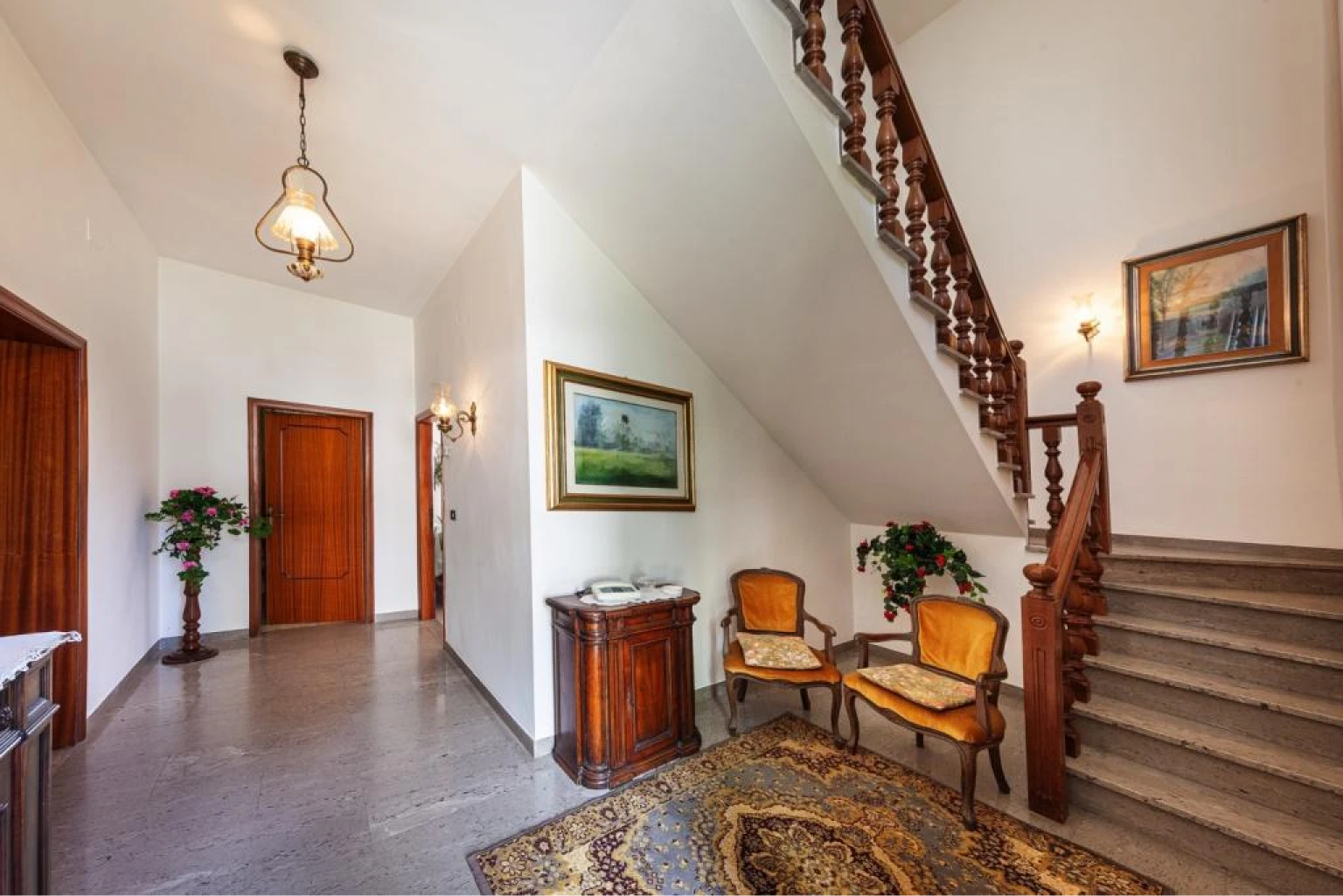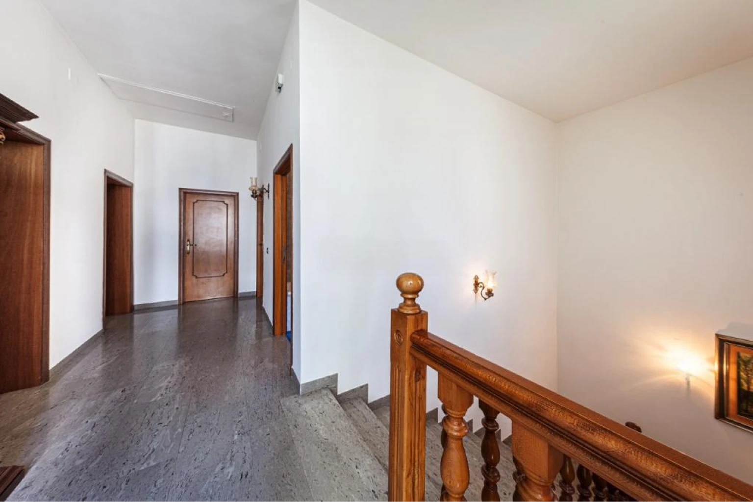 A área social (zona de estar) tem piso em mármore de alta qualidade, enquanto o andar superior possui parquet de madeira. A casa conserva todos os elementos de valor típicos dos anos 70 — época em que foi construída — e foi perfeitamente mantida ao longo do tempo.