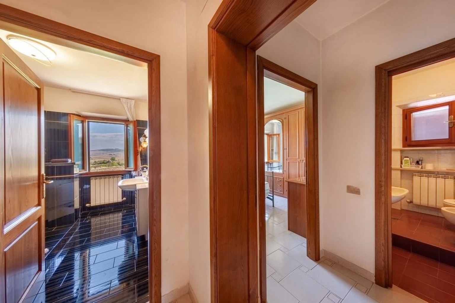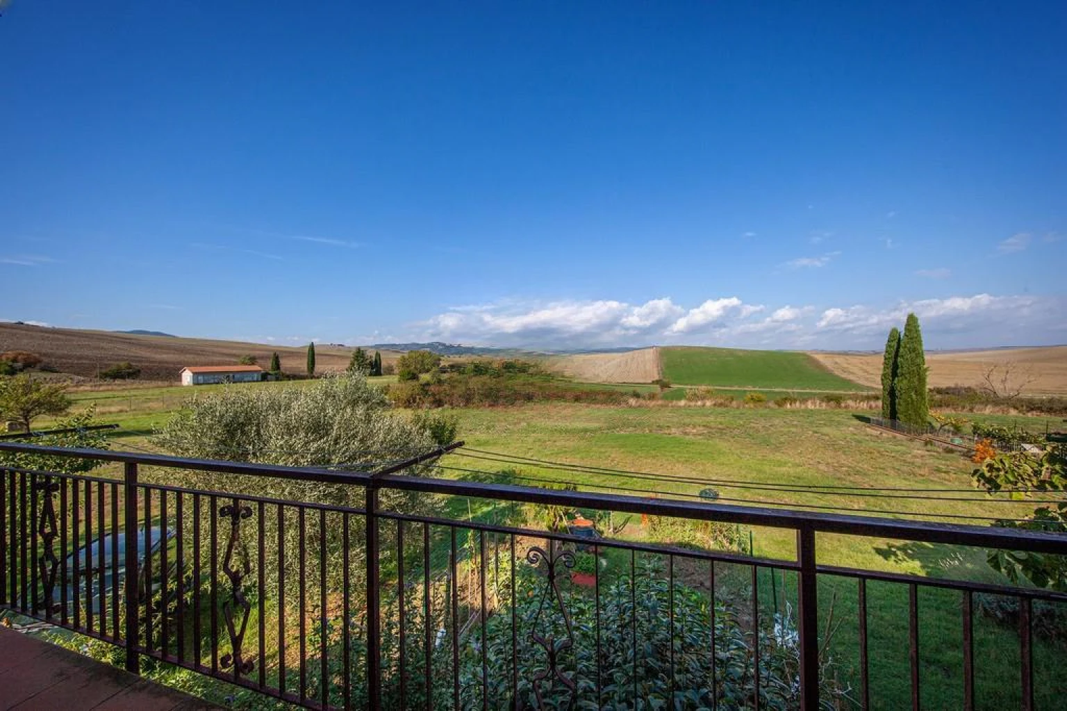 Desde 2004, a incrível paisagem do Val d’Orcia é Patrimônio Mundial da UNESCO — e uma bela porção desse cenário pode ser admirada das janelas desta residência. Ao abrir qualquer uma das janelas, o olhar encantado percorre colinas verdejantes até o perfil de Castiglione D’Orcia, passando por campos de trigo até Rocca D’Orcia e, do outro lado, Monticchiello e a estrada da Foce.